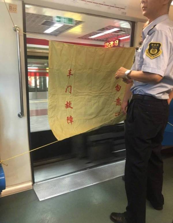 Making the trains run on time is no easy task. Punctuality requires commitment and resourcefulness, just the traits exhibited by Beijing Metro employees who decided to deal with a malfunctioning subway door Wednesday morning by cordoning it off with string and cloth – all while allowing the subway to remain in service, zipping down the tracks with a wide-open door.