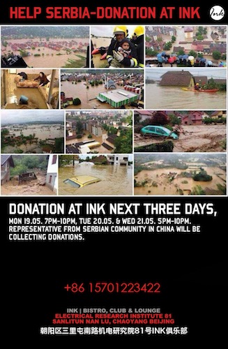 Representatives from the Serbian community here in Beijing will be collecting cash donations at Ink today from 5-10pm. Today is the last day they will be collecting, so make sure to drop by and donate for this important cause.